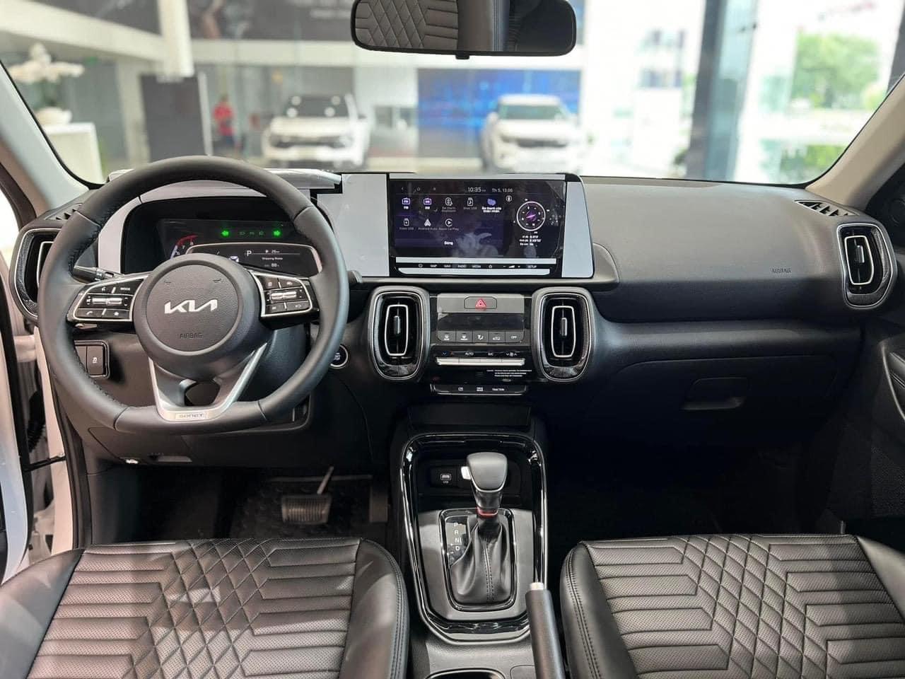 Là mẫu xe sở hữu kích thước lớn hàng đầu trong phân khúc, cụ thể, kích thước (dài x rộng x cao) lần lượt là 4.120 x 1.790 x 1.642 (mm), và chiều dài cơ sở là 2.500mm, Kia New Sonet 2024 sở hữu không gian bên trong rộng rãi; khoang lái hiện đại, thông minh với tầm quan sát tốt cùng nhiều trang bị tiện nghi hỗ trợ người lái. Nội thất của Kia New Sonet thể hiện sự cao cấp khi trang bị ghế chất liệu da mềm mại, họa tiết sắc nét cùng tùy chọn tông nội thất đen sang trọng.