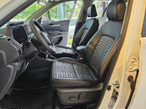 Nhìn từ phía trước, lưới tản nhiệt hình mũi hổ thiết kế mới cách điệu đan xen họa tiết hình sóng độc đáo, mở rộng theo phương ngang tạo nên sự bề thế. Cản trước được tạo hình nổi khối tạo hiệu ứng dòng chảy kết hợp với ốp cản sơn bạc, kết hợp họa tiết lưới đen tương phản tạo sự cứng cáp và chắc chắn, đậm chất SUV.