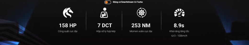 Trên phiên bản Turbo sử dụng động cơ xăng SmartStream1.5L Tăng áp (158hp, 253Nm)